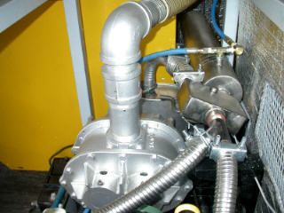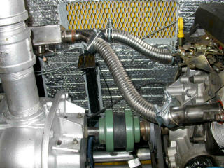exchanger with stainless flex pipe. Below is a lright hand header,